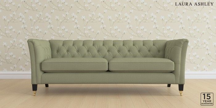 6.12.1 Buy Chatsworth Button Back by Laura Ashley 4 Seater Sofa Edwin Herringbone Hedgerow Green Straight Brass Castor - Black from the Next UK online shop Click here to use our accessible website