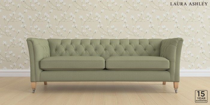 6.12.1 Buy Chatsworth Button Back by Laura Ashley 4 Seater Sofa Edwin Herringbone Hedgerow Green Straight Chrome Castor - Light Oak from the Next UK online shop Click here to use our accessible website