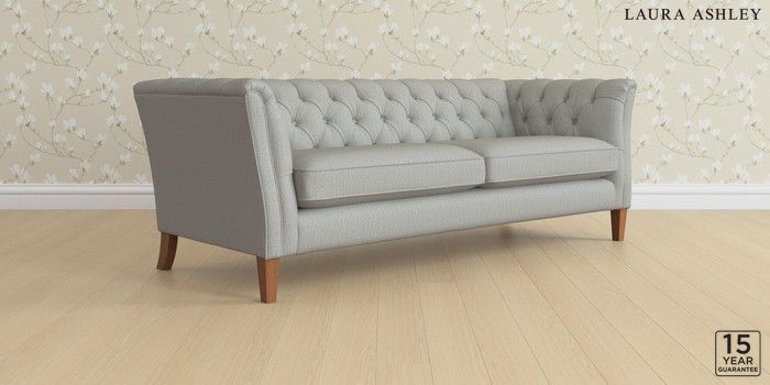 6.12.13 Buy Chatsworth Button Back by Laura Ashley 4 Seater Sofa Edwin Herringbone Pale Steel Grey Straight Mid - Teak from the Next UK online shop Click here to use our accessible website