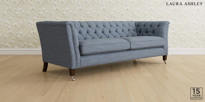 6.12.13 Buy Chatsworth Button Back by Laura Ashley 4 Seater Sofa Harley Seaspray Blue Straight Chrome Castor - Chestnut from the Next UK online shop Click here to use our accessible website