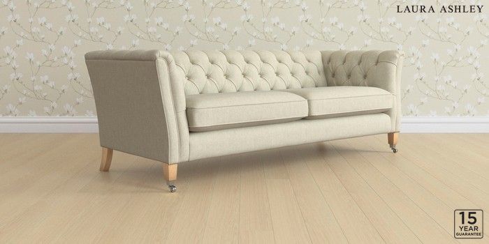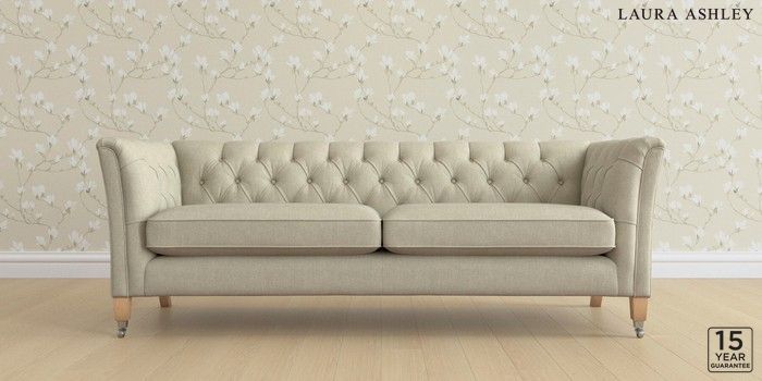 6.12.13 Buy Chatsworth Button Back by Laura Ashley 4 Seater Sofa Kinsham Natural Straight Chrome Castor - Light Oak from the Next UK online shop Click here to use our accessible website