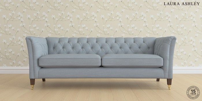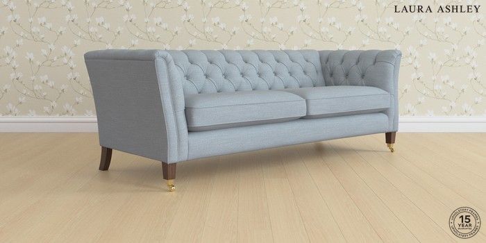 6.12.1 Buy Chatsworth Button Back by Laura Ashley 4 Seater Sofa Kinsham Seaspray Blue Straight Brass Castor - Chestnut from the Next UK online shop Click here to use our accessible website