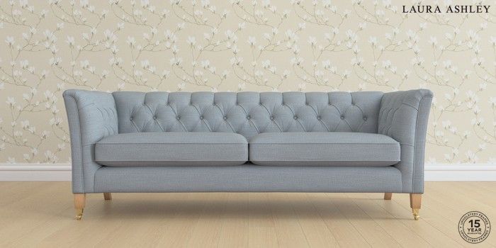 6.12.1 Buy Chatsworth Button Back by Laura Ashley 4 Seater Sofa Kinsham Seaspray Blue Straight Brass Castor - Light Oak from the Next UK online shop Click here to use our accessible website
