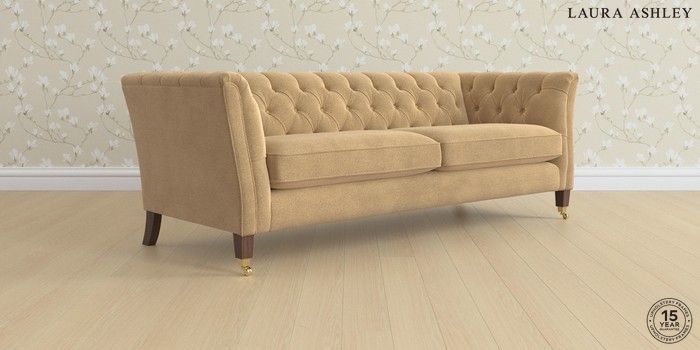 6.12.1 Buy Chatsworth Button Back by Laura Ashley 4 Seater Sofa Lundar Chenille Caramel Natural Straight Brass Castor - Chestnut from the Next UK online shop Click here to use our accessible website
