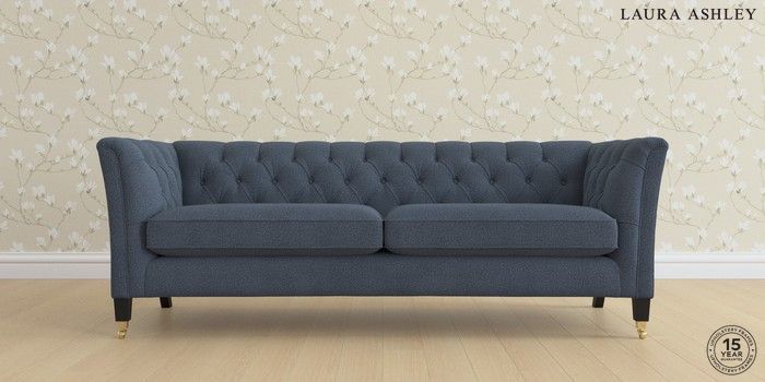 6.12.1 Buy Chatsworth Button Back by Laura Ashley 4 Seater Sofa Lundar Chenille Navy Blue Straight Brass Castor - Black from the Next UK online shop Click here to use our accessible website