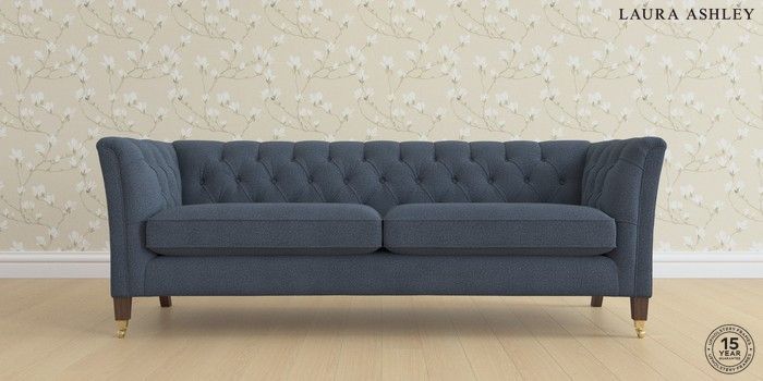 6.12.1 Buy Chatsworth Button Back by Laura Ashley 4 Seater Sofa Lundar Chenille Navy Blue Straight Brass Castor - Chestnut from the Next UK online shop Click here to use our accessible website