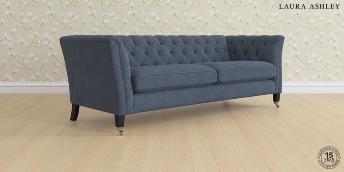 6.12.1 Buy Chatsworth Button Back by Laura Ashley 4 Seater Sofa Lundar Chenille Navy Blue Straight Chrome Castor - Black from the Next UK online shop Click here to use our accessible website