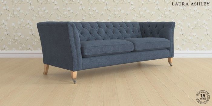 6.12.1 Buy Chatsworth Button Back by Laura Ashley 4 Seater Sofa Lundar Chenille Navy Blue Straight Chrome Castor - Light Oak from the Next UK online shop Click here to use our accessible website