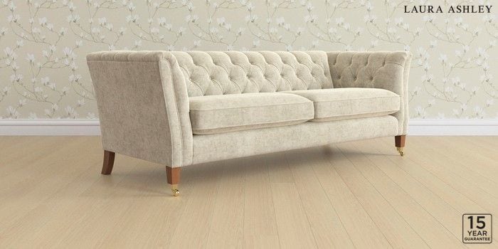 6.12.1 Buy Chatsworth Button Back by Laura Ashley 4 Seater Sofa Nantmor Truffle Natural Straight Brass Castor - Teak from the Next UK online shop Click here to use our accessible website