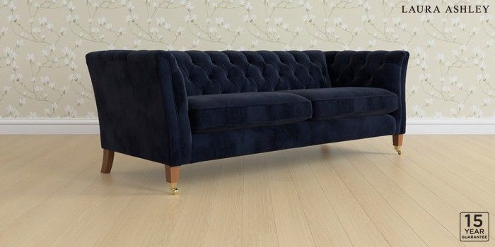 6.12.1 Buy Chatsworth Button Back by Laura Ashley 4 Seater Sofa Orla Midnight Navy Straight Brass Castor - Teak from the Next UK online shop Click here to use our accessible website