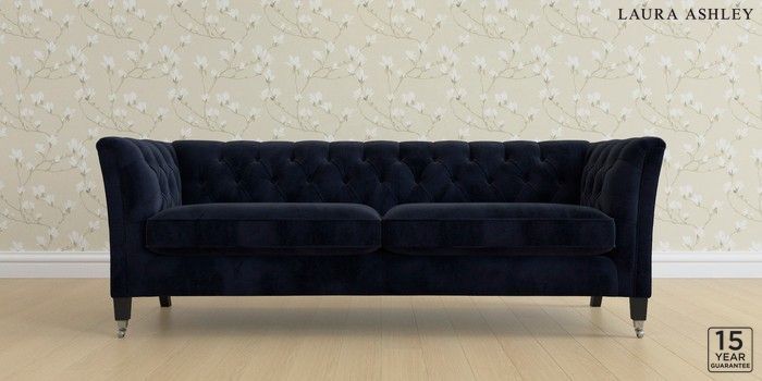 6.12.13 Buy Chatsworth Button Back by Laura Ashley 4 Seater Sofa Orla Midnight Navy Straight Chrome Castor - Black from the Next UK online shop Click here to use our accessible website