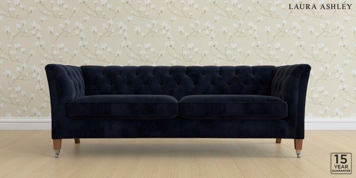 6.12.13 Buy Chatsworth Button Back by Laura Ashley 4 Seater Sofa Orla Midnight Navy Straight Chrome Castor - Teak from the Next UK online shop Click here to use our accessible website