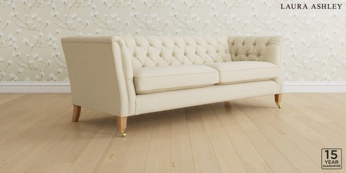 6.12.1 Buy Chatsworth Button Back by Laura Ashley 4 Seater Sofa Orla Oyster Natural Straight Brass Castor - Light Oak from the Next UK online shop Click here to use our accessible website