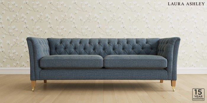 6.12.1 Buy Chatsworth Button Back by Laura Ashley 4 Seater Sofa Orla Seaspray Blue Straight Brass Castor - Light Oak from the Next UK online shop Click here to use our accessible website