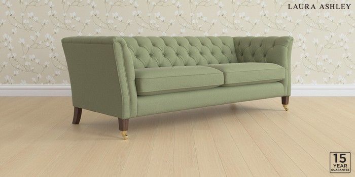 6.12.13 Buy Chatsworth Button Back by Laura Ashley 4 Seater Sofa Peyton Hedgerow Green Straight Brass Castor - Chestnut from the Next UK online shop Click here to use our accessible website