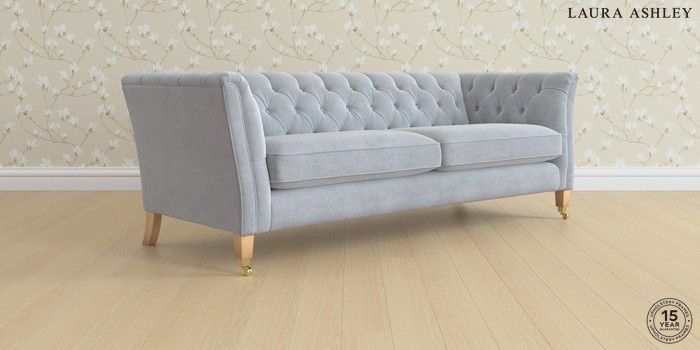 6.12.1 Buy Chatsworth Button Back by Laura Ashley 4 Seater Sofa Peyton Powder Blue Straight Brass Castor - Light Oak from the Next UK online shop Click here to use our accessible website