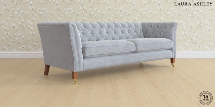 6.12.1 Buy Chatsworth Button Back by Laura Ashley 4 Seater Sofa Peyton Powder Blue Straight Brass Castor - Teak from the Next UK online shop Click here to use our accessible website