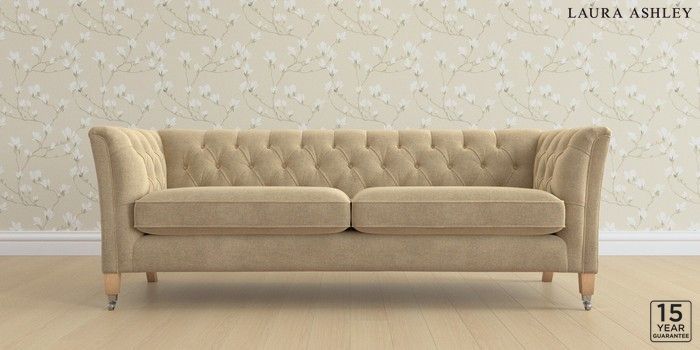 6.12.13 Buy Chatsworth Button Back by Laura Ashley 4 Seater Sofa Peyton Sable Natural Straight Chrome Castor - Light Oak from the Next UK online shop Click here to use our accessible website