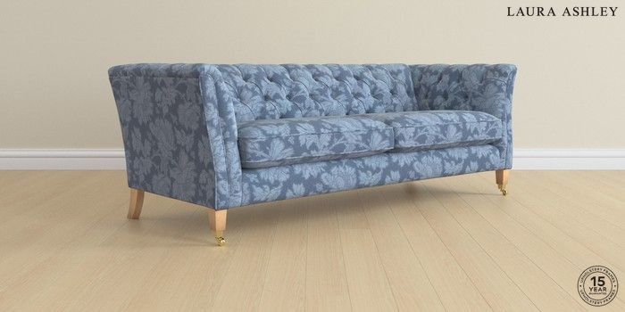 6.12.1 Buy Chatsworth Button Back by Laura Ashley 4 Seater Sofa Tamara Dusky Seaspray Blue Straight Brass Castor - Light Oak from the Next UK online shop Click here to use our accessible website