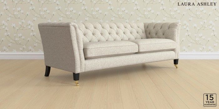 6.12.1 Buy Chatsworth Button Back by Laura Ashley 4 Seater Sofa Tichwell Stone Natural Straight Brass Castor - Black from the Next UK online shop Click here to use our accessible website