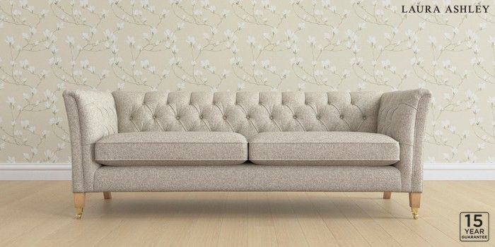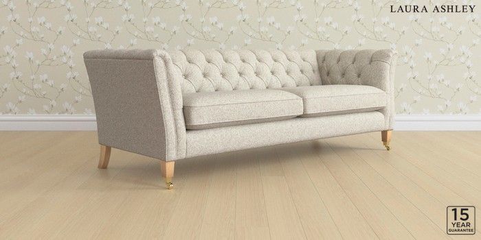 6.12.1 Buy Chatsworth Button Back by Laura Ashley 4 Seater Sofa Tichwell Stone Natural Straight Brass Castor - Light Oak from the Next UK online shop Click here to use our accessible website
