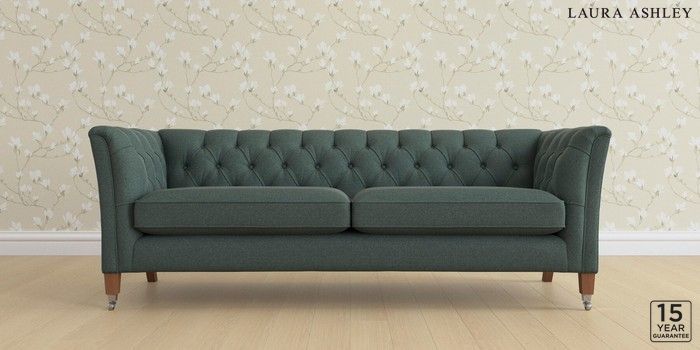 6.12.13 Buy Chatsworth Button Back by Laura Ashley 4 Seater Sofa Wooton Forest Green Straight Chrome Castor - Teak from the Next UK online shop Click here to use our accessible website
