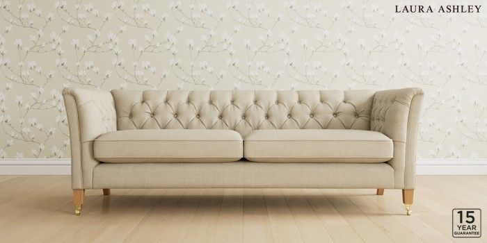 6.12.1 Buy Chatsworth Button Back by Laura Ashley 4 Seater Sofa Wooton Natural Straight Brass Castor - Light Oak from the Next UK online shop Click here to use our accessible website
