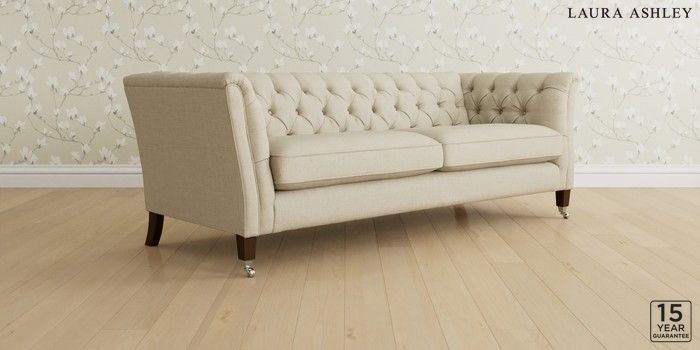 6.12.13 Buy Chatsworth Button Back by Laura Ashley 4 Seater Sofa Wooton Natural Straight Chrome Castor - Chestnut from the Next UK online shop Click here to use our accessible website