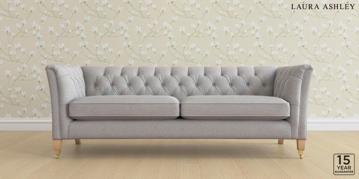 6.12.13 Buy Chatsworth Button Back by Laura Ashley 4 Seater Sofa Wooton Pale Steel Grey Straight Brass Castor - Light Oak from the Next UK online shop Click here to use our accessible website