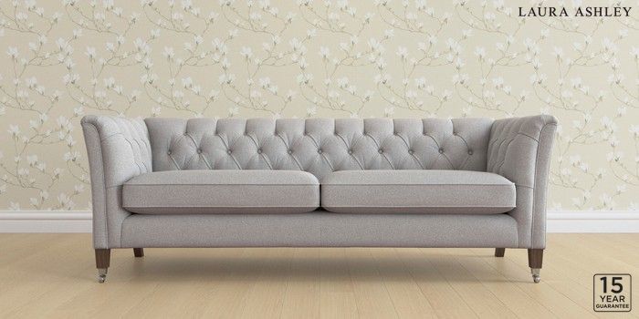 6.12.1 Buy Chatsworth Button Back by Laura Ashley 4 Seater Sofa Wooton Pale Steel Grey Straight Chrome Castor - Chestnut from the Next UK online shop Click here to use our accessible website