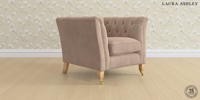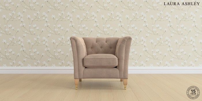 6.12.1 Buy Chatsworth Button Back by Laura Ashley Armchair Ailsworth Mink Natural Straight Brass Castor - Light Oak from the Next UK online shop Click here to use our accessible website