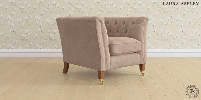 6.12.1 Buy Chatsworth Button Back by Laura Ashley Armchair Ailsworth Mink Natural Straight Brass Castor - Teak from the Next UK online shop Click here to use our accessible website