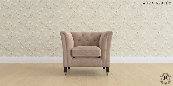 6.12.1 Buy Chatsworth Button Back by Laura Ashley Armchair Ailsworth Mink Natural Straight Chrome Castor - Black from the Next UK online shop Click here to use our accessible website