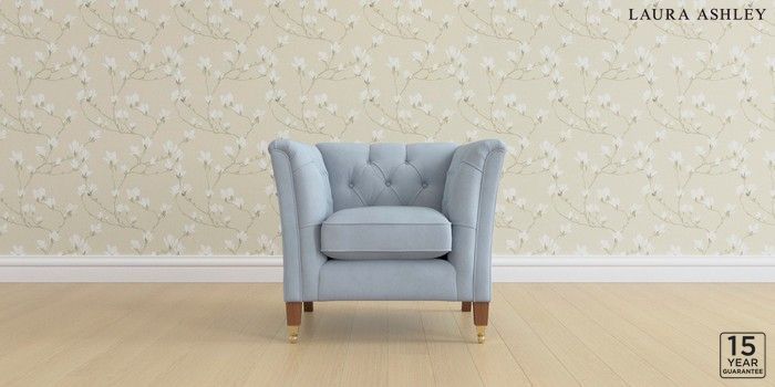 6.12.13 Buy Chatsworth Button Back by Laura Ashley Armchair Ailsworth Newport Blue Straight Brass Castor - Teak from the Next UK online shop Click here to use our accessible website