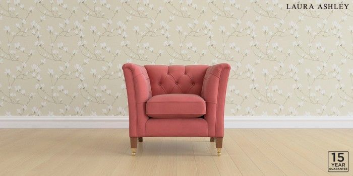 6.12.1 Buy Chatsworth Button Back by Laura Ashley Armchair Ailsworth Old Rose Pink Straight Brass Castor - Teak from the Next UK online shop Click here to use our accessible website