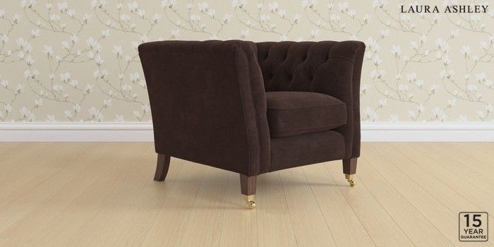 6.12.1 Buy Chatsworth Button Back by Laura Ashley Armchair Alwyn Velvet Chocolate Brown Straight Brass Castor - Chestnut from the Next UK online shop Click here to use our accessible website