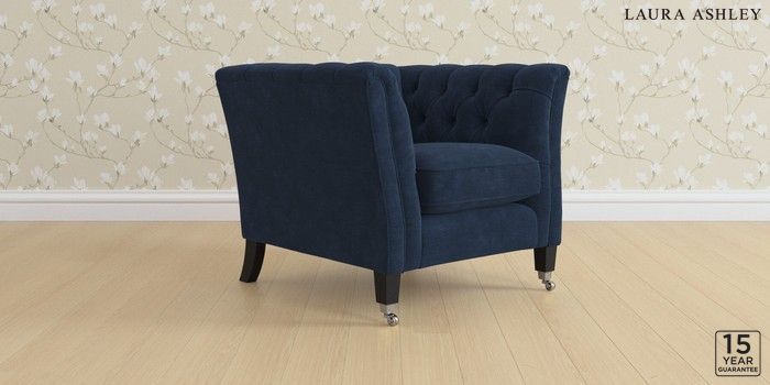 6.12.13 Buy Chatsworth Button Back by Laura Ashley Armchair Alwyn Velvet Midnight Navy Straight Chrome Castor - Black from the Next UK online shop Click here to use our accessible website