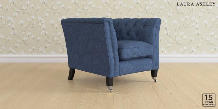 6.12.1 Buy Chatsworth Button Back by Laura Ashley Armchair Bainton Midnight Navy Straight Chrome Castor - Black from the Next UK online shop Click here to use our accessible website