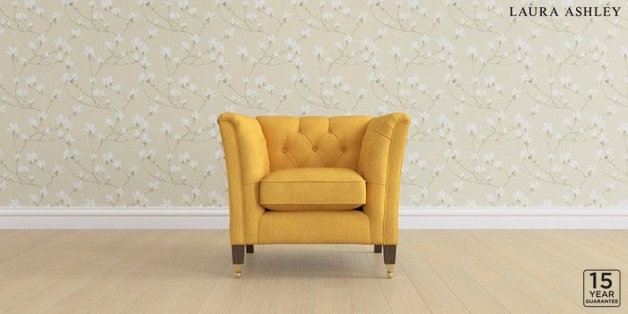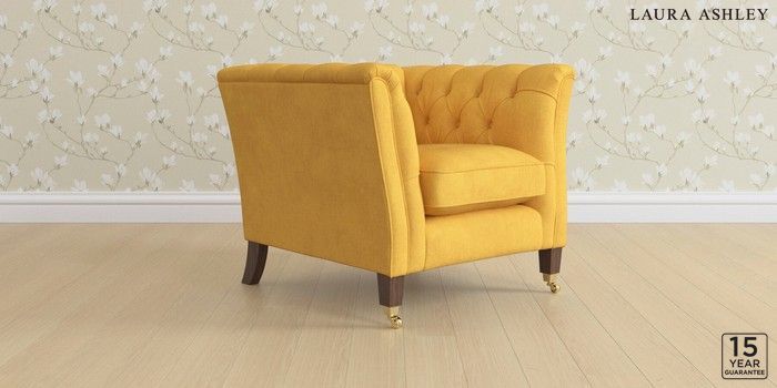 6.12.1 Buy Chatsworth Button Back by Laura Ashley Armchair Bainton Ochre Yellow Straight Brass Castor - Chestnut from the Next UK online shop Click here to use our accessible website