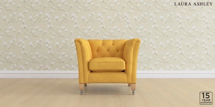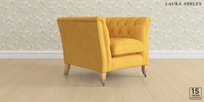 6.12.1 Buy Chatsworth Button Back by Laura Ashley Armchair Bainton Ochre Yellow Straight Chrome Castor - Light Oak from the Next UK online shop Click here to use our accessible website