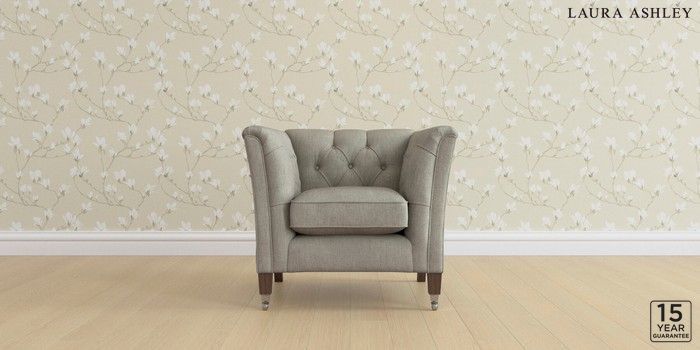 6.12.1 Buy Chatsworth Button Back by Laura Ashley Armchair Bainton Pale Steel Grey Straight Chrome Castor - Chestnut from the Next UK online shop Click here to use our accessible website
