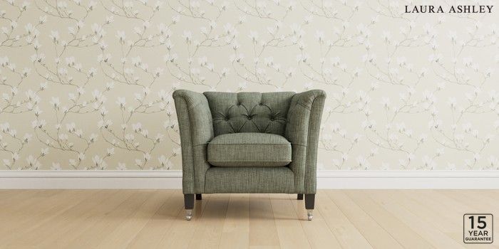 6.12.1 Buy Chatsworth Button Back by Laura Ashley Armchair Bainton Sage Green Straight Chrome Castor - Black from the Next UK online shop Click here to use our accessible website
