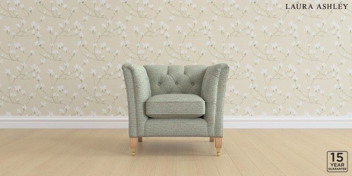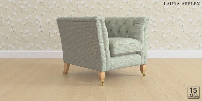 6.12.1 Buy Chatsworth Button Back by Laura Ashley Armchair Borwick Newport Blue Straight Brass Castor - Light Oak from the Next UK online shop Click here to use our accessible website