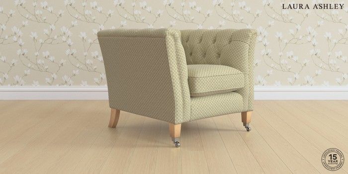 6.12.1 Buy Chatsworth Button Back by Laura Ashley Armchair Chequers Hedgerow Green Straight Chrome Castor - Light Oak from the Next UK online shop Click here to use our accessible website