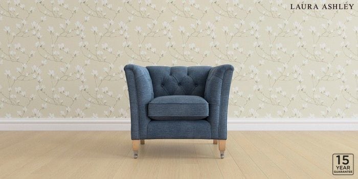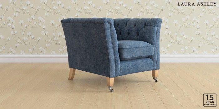 6.12.1 Buy Chatsworth Button Back by Laura Ashley Armchair Edwin Chenille Seaspray Blue Straight Chrome Castor - Light Oak from the Next UK online shop Click here to use our accessible website