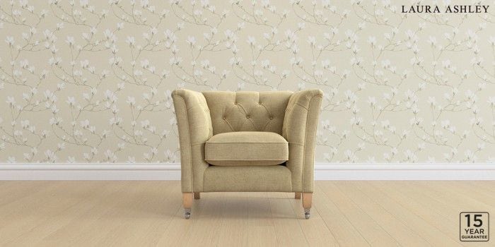 6.12.1 Buy Chatsworth Button Back by Laura Ashley Armchair Edwin Chenille Truffle Natural Straight Chrome Castor - Light Oak from the Next UK online shop Click here to use our accessible website