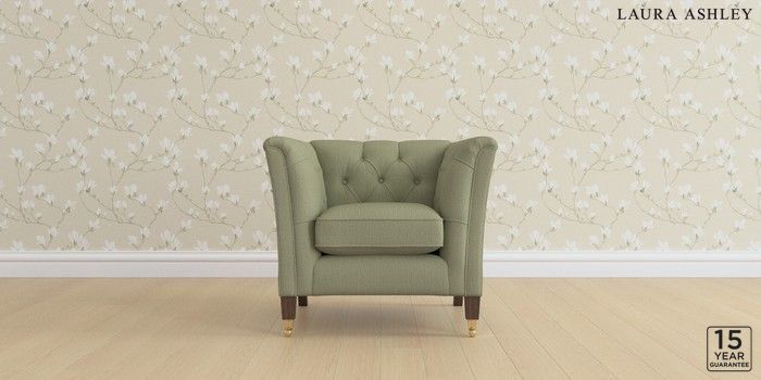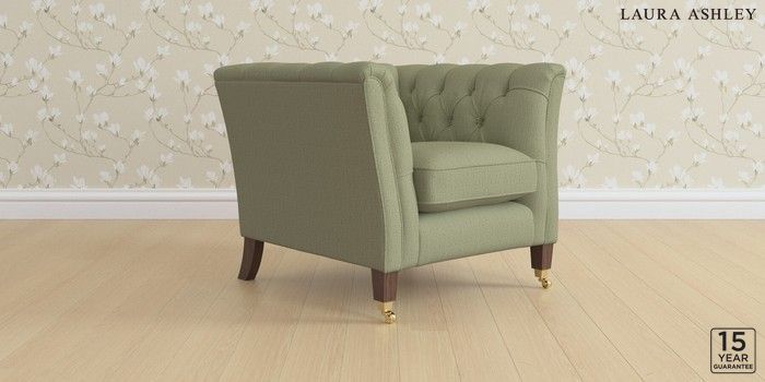 6.12.1 Buy Chatsworth Button Back by Laura Ashley Armchair Edwin Herringbone Hedgerow Green Straight Brass Castor - Chestnut from the Next UK online shop Click here to use our accessible website