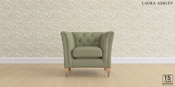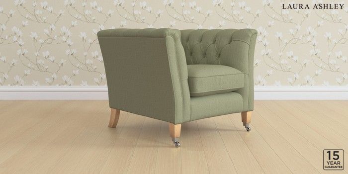 6.12.1 Buy Chatsworth Button Back by Laura Ashley Armchair Edwin Herringbone Hedgerow Green Straight Chrome Castor - Light Oak from the Next UK online shop Click here to use our accessible website