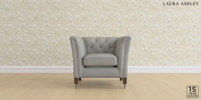 6.12.1 Buy Chatsworth Button Back by Laura Ashley Armchair Edwin Herringbone Pale Steel Grey Straight Chrome Castor - Chestnut from the Next UK online shop Click here to use our accessible website