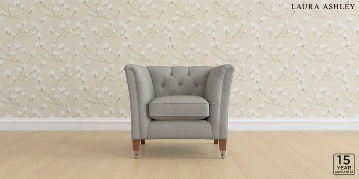 6.12.1 Buy Chatsworth Button Back by Laura Ashley Armchair Edwin Herringbone Pale Steel Grey Straight Chrome Castor - Teak from the Next UK online shop Click here to use our accessible website